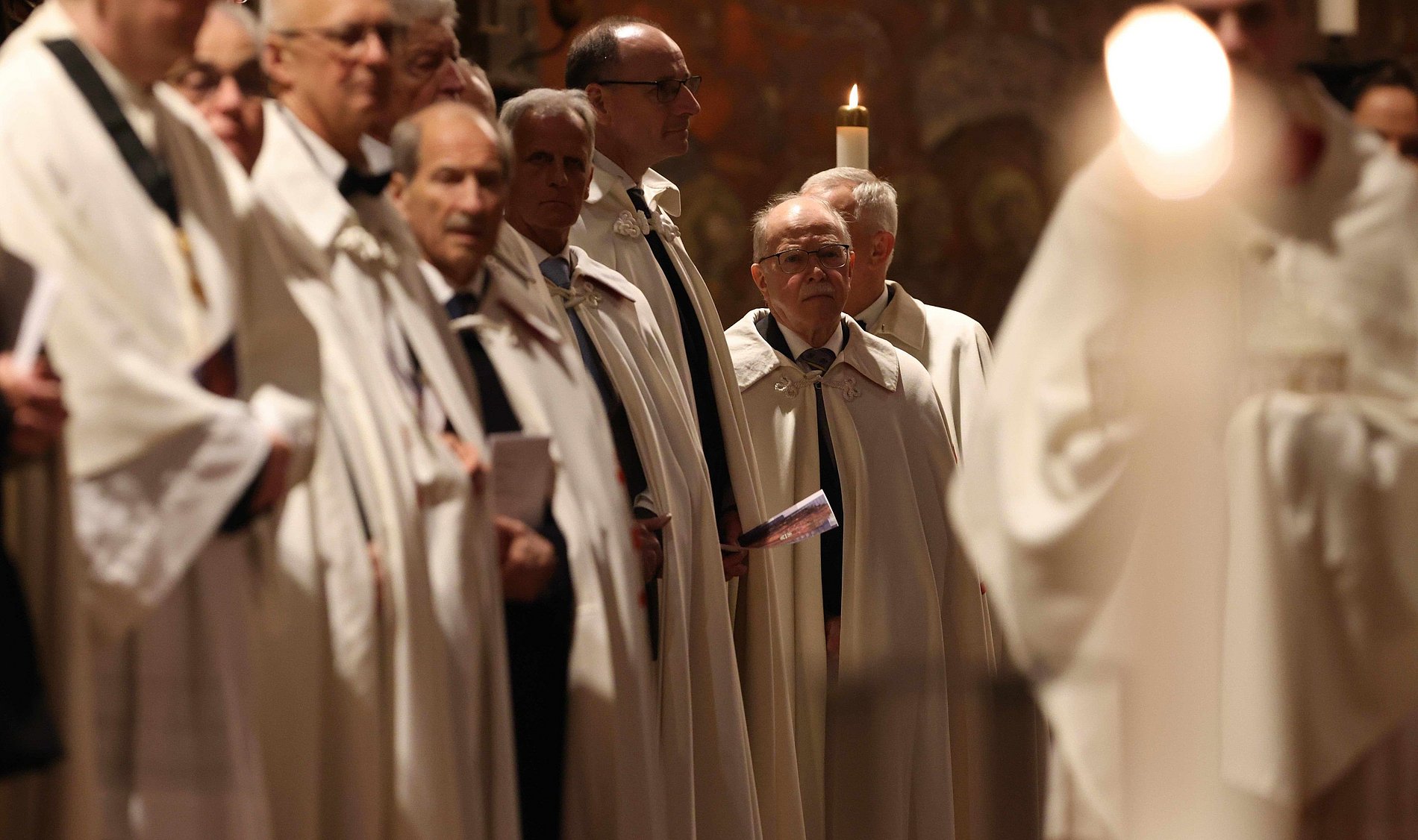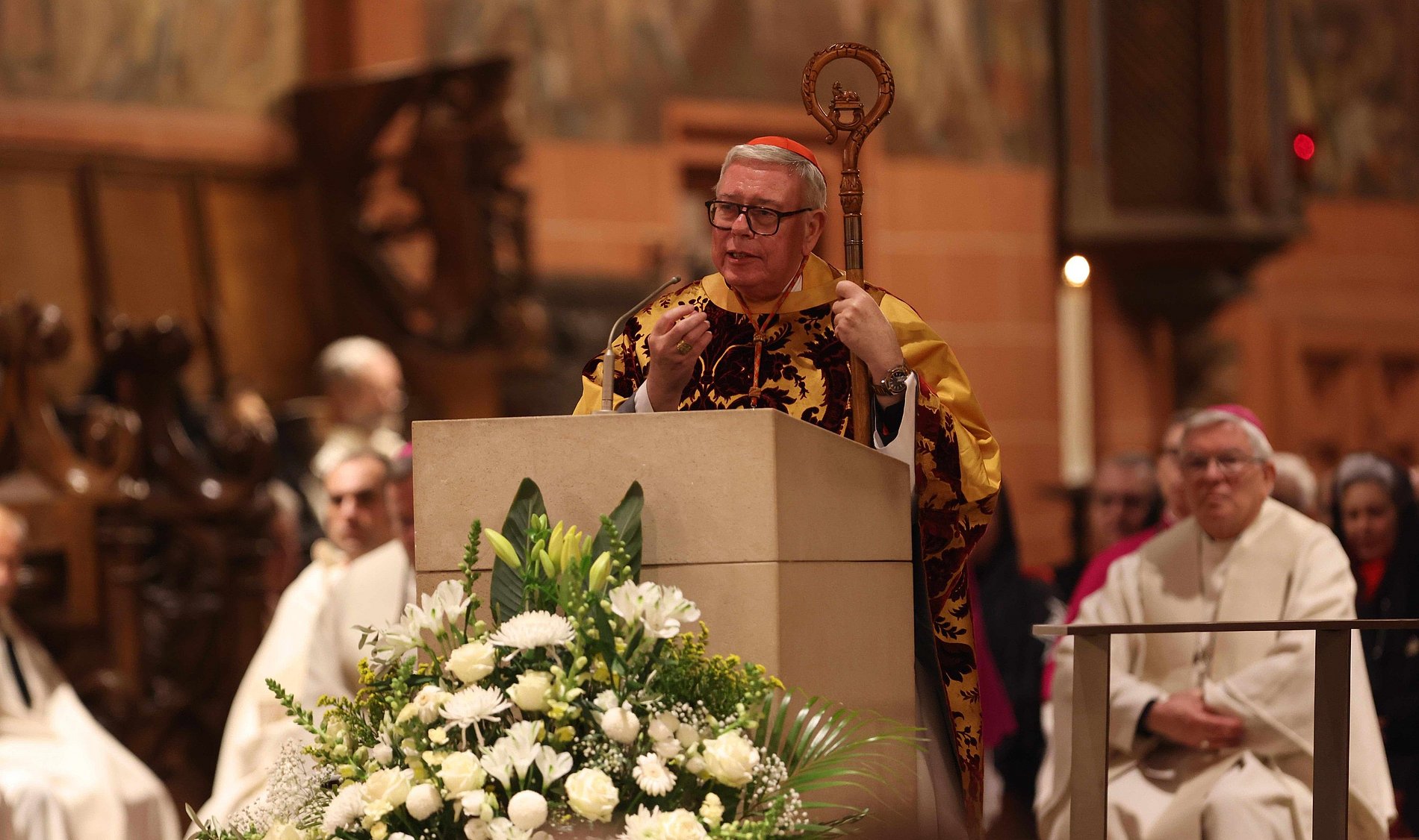 Frankfurts Dom ist dem Gastbischof nicht fremd, daran erinnerte der Limburger Bischof Dr. Georg Bätzing zu Beginn der feierlichen Messe, die mit ihren traditionellen lateinischen Gesängen stets einen Höhepunkt Ende Januar markiert. „Kardinal Hollerich war im Jahr 1989 vier Monate Diakon hier am Frankfurter Dom“, erklärte Bätzing. „In der Zeit des Studiums hat er auch das Karlsamt bereits miterlebt, deshalb ist das, was heute Abend geschieht, nichts, was von außen kommt.“ Jean-Claude Hollerich studierte 1989 und 1990 an der philosophisch-theologischen Hochschule St. Georgen in Frankfurt und erhielt hier das Lizenziat der Theologie.