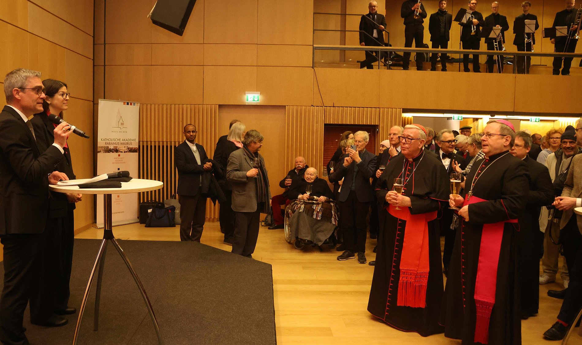 Kardinal Hollerich bedankte sich für den herzlichen Empfang und berichtete, dass ihn während seiner Studienzeit in Sankt Georgen 1989 und 1990 besonders die Weltoffenheit Frankfurts tief beeindruckt habe. Karl der Große sei ein neugieriger Herrscher gewesen, der offen mit anderen Kulturen in den Austausch getreten sei, und diese Offenheit sei prägend für die Stadt Frankfurt. Europa beschrieb er als Potpourri verschiedener positiver Einflüsse. „Die europäische Kultur hat das Gute aller Kontinente übernommen. Danach sind wir aber leider behäbig geworden.“ Und auch ein Stückweit arrogant, ließ er durchblicken. Wenn Europa von oben herab auf andere Weltanschauungen blicke, sei das „dumm und überhaupt nicht christlich“, so Hollerich: „Ich hoffe, dass Europa die Fähigkeit behält, umzudenken, und aus dieser Lethargie herauskommt. Denn wenn man nicht mehr bereit ist, umzudenken, ist man tot.“