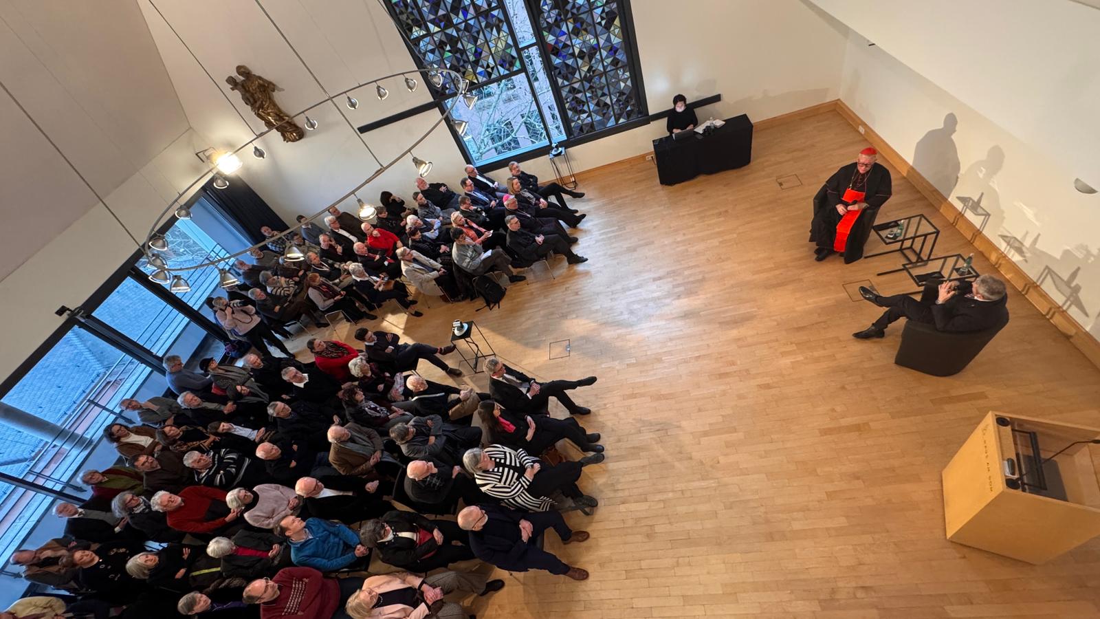 Das Karlsamt, das stets am letzten Samstag im Januar stattfindet, ist traditionell gleichermaßen Tradition und Moderne, wenn in der Predigt und im Domgespräch am Nachmittag unmittelbar vor dem Karlsamt im Haus am Dom welt- und kirchenpolitische Themen zur Sprache kommen. Beim Domgespräch geht seit 20 Jahren der Gastbischof mit dem Direktor der Katholischen Akademie, Prof. Dr. Joachim Valentin, ins Gespräch. Bei dem gut einstündigen Austausch vor Publikum und mit Livestream sagte Kardinal Hollerich: „Ich werde in der Presse als ultraliberal gehandelt, fühle mich aber nicht so. Ich glaube, dass ich der katholischen Kirche treu bin. Ich bin der Meinung von Papst Franziskus, dass die Kirche für alle, alle, alle offen sein muss.“