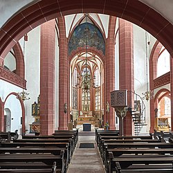 St. Leonhard gilt als schönste mittelalterliche Kirche Frankfurts. Seit ihrer Gründung 1219 war sie eine bedeutende Station für Pilgerinnen und Pilger auf dem Weg ins Heilige Land oder nach Santiago de Compostela. 1323, nach dem Erwerb einer bedeutenden Reliquie, wurde die Kirche dem Heiligen Leonhard geweiht. Auch seine Grablege in St-Léonard-de-Noblat ist eine wichtige Etappe auf dem Jakobsweg. Das Dommuseum bietet jeden Sonntag eine kostenlose Führung durch die Kirche an, u.a. zu den mittelalterlichen Glasfenstern im spätgotischen Chor.